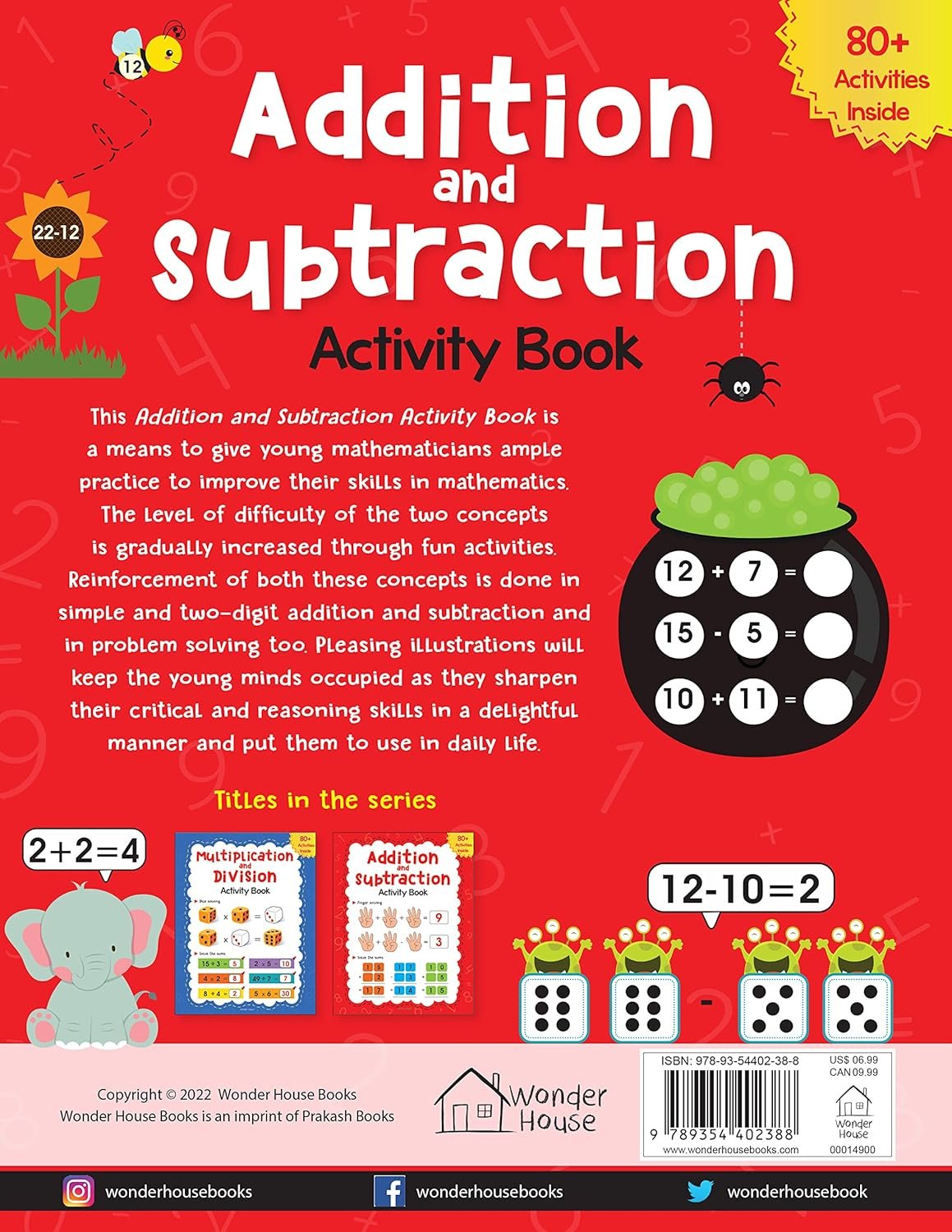 This Addition and Subtraction Activity Book is a means to give young mathematicians ample practice to improve their skills in mathematics. The level of difficulty of the two concepts is gradually increased through fun activities. Reinforcement of both these concepts is done in simple and two-digit addition and subtraction and in problem solving too. Pleasing illustrations will keep the young minds occupied as they sharpen their critical and reasoning skills in a delightful manner and put them to use in daily life.